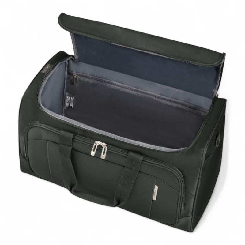 Bolsa de viaje. El 100% del tejido exterior está fabricado con plástico PET reciclado. Color Forest Green Dimensiones 33 x 55 x 30 cm Tamaño Maletas de cabina Volumen 54 L Peso 0.7 kg