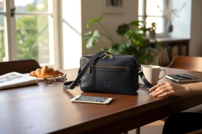 Bolso con bandolera regulable fabricado en Piel Floater de tacto suave. 1 Bolso frontal exterior + 2 Cremalleras Centrales 1 Cremallera exterior trasera. Interior con bolsillo de cremallera y otro para teléfono móvil. Dimensiones : 27cm x 18cm x 8cm.