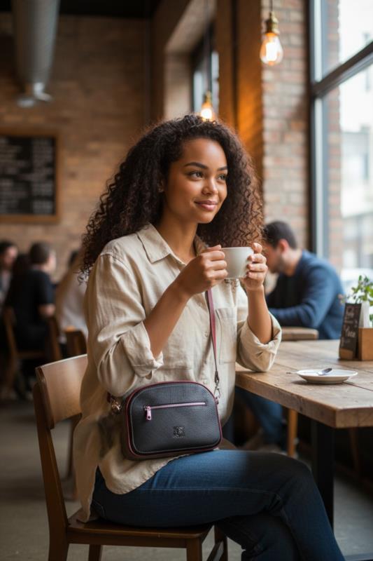 Bolso con bandolera regulable fabricado en Piel Floater de tacto suave. En su interior dispone de bolsillo para teléfono móvil y otro de cremallera. Fabricado en España. Dimensiones : 25cm X 18.5cm X 7 cm.