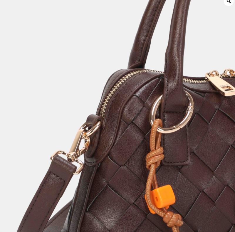 La bandolera trenzada con 2 asas más trendy de toda la temporada con su Charm incluido en su exterior y extraíble. Su asa es ajustable para mayor comodidad. La apertura principal cuenta con cremallera. Medidas Alto:14m Ancho: 28cm Fondo:9cm