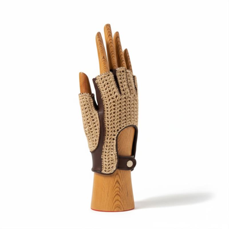 GUANTE CONDUCIR SRA CROCHET/PIEL NUEZ/TOSTADO