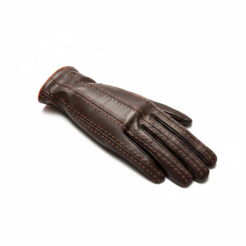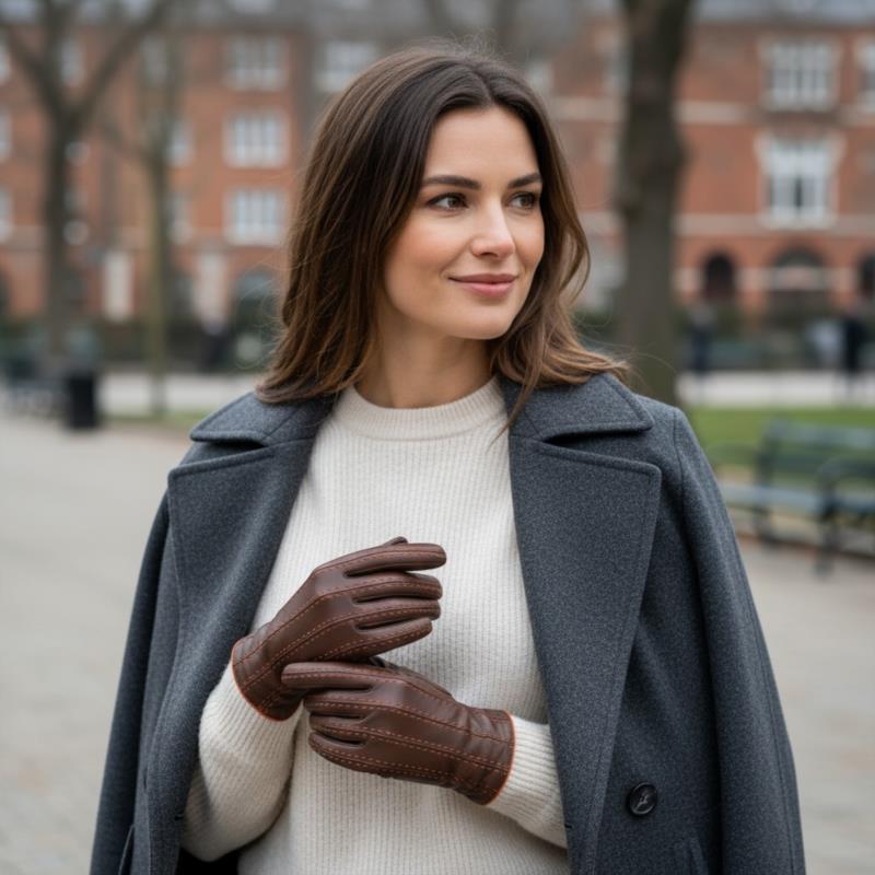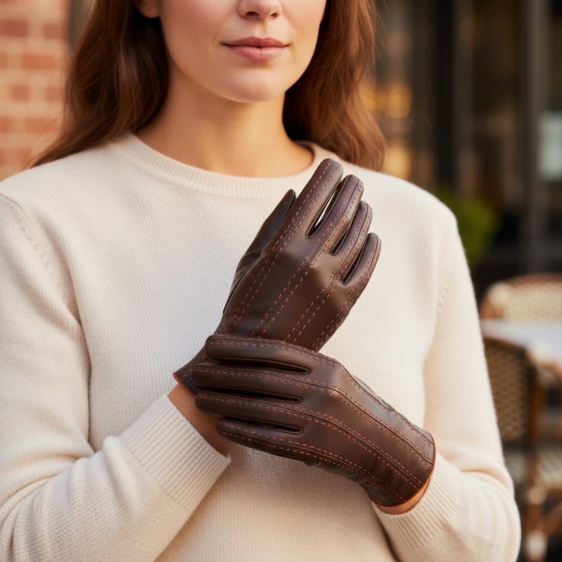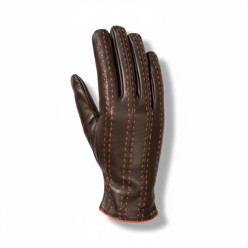 GUANTE SRA PIEL MARRON/NARANJA. FORRO LANA 100%