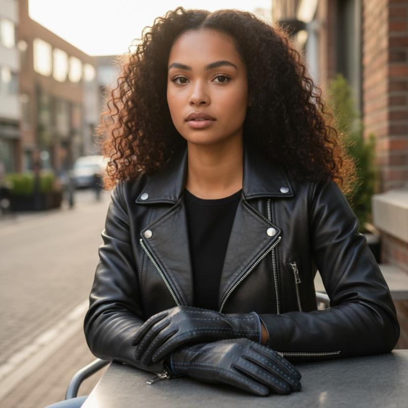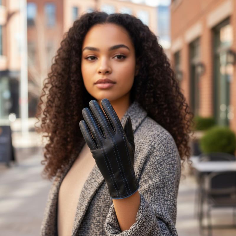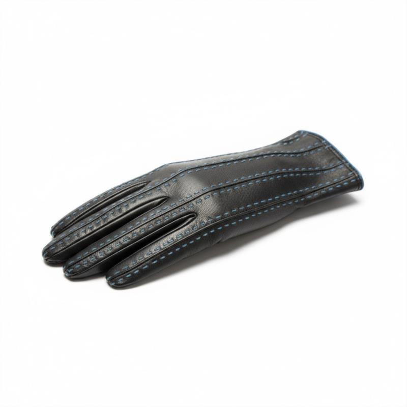GUANTE SRA PIEL NEGRO/AZUL. FORRO LANA 100%
