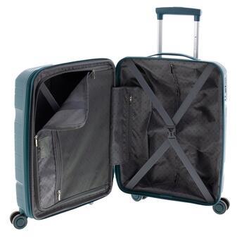 Maleta de cabina con medidas maximizadas. Cuatro ruedas dobles con suspensión. Cierre TSA incrustado en el lateral. Asa superior. Extensible. Mecanismo barra con botón. Componentes al tono. Interior forrado con bolsillos y cintas elásticas de soporte en ambos lados. Fabricada en polipropileno, material Super Resistente. Medidas: 40x55x20/25. Volumen: 36L/40L