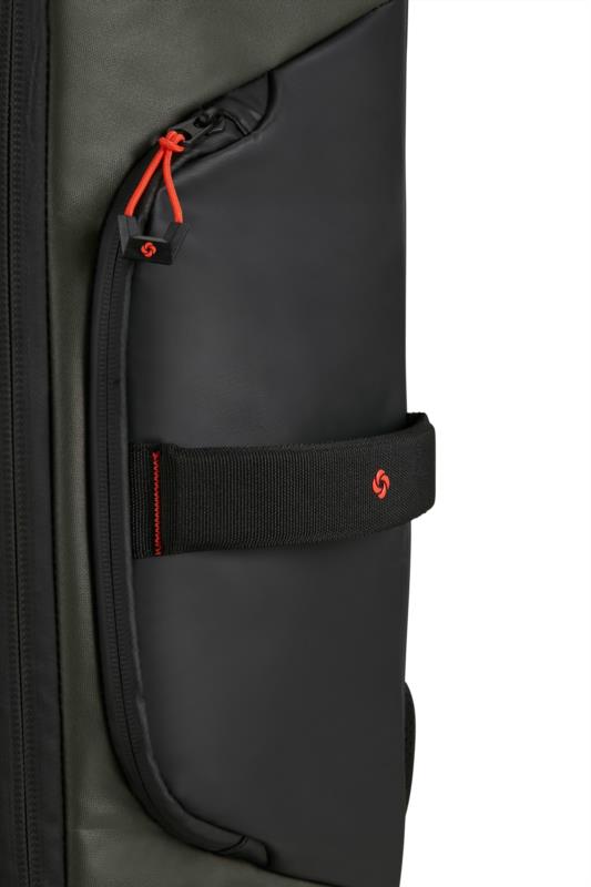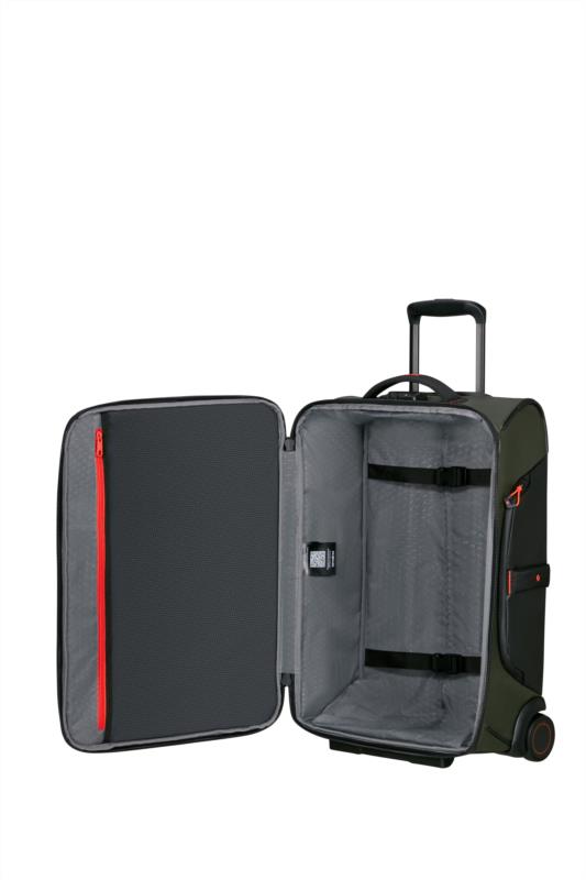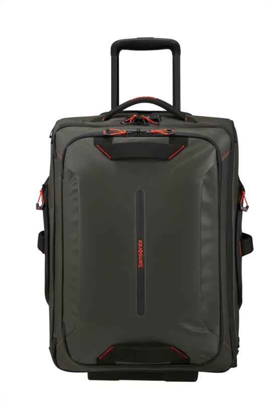 Ecodiver establece un nuevo estándar dentro de nuestra gama casual. Esta colección combina practicidad con un diseño elegante y ha sido desarrollada con especial atención a la seguridad y comodidad. Utilizando materiales reciclados, Ecodiver encaja perfectamente en nuestra estrategia de "Viaje responsable". El revestimiento resistente al agua hace de esta gama la elección perfecta para todas tus aventuras al aire libre y tus interminables paseos por la ciudad. Bolsa de viaje con ruedas Color Negro Dimensiones 55 x 40 x 20 cm .Maleta de cabina Volumen 48 L Peso 2.5 kg. Candado de combinación con función TSA Cremalleras. Tirador Doble tubo Ruedas 2 ruedas Sistema integrado Bolsillos exteriores Compartimento frontal de fácil acceso con forma de C Equipaje de mano.Etiqueta para dirección Etiqueta de identificación integrada Detalles reflectantes. Asa inferior. Compartimiento central.