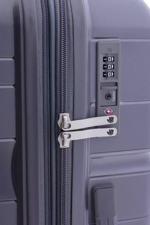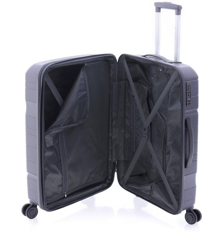 Maleta grande con cuatro ruedas dobles con suspensión. Cierre TSA incrustado en el lateral. Asa superior y asa lateral. Cremallera Extensible. Mecanismo barra con botón. Componentes al tono. Interior forrado con bolsillos y soporte de cintas elásticas en ambos lados. Fabricada en Polipropileno, Material súper resistente. Medidas: 53x77x29/32 cm Volumen: 105/115 L