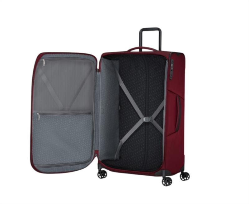 Maleta mediana 79 x 48 x 31/35 cm cm. Volumen 124/140 L .Peso 3.6 kg El material exterior está hecha con 100 % de PET reciclado posconsumo, dentro de nuestra iniciativa de tecnología de materiales Recyclex™. El revestimiento y el refuerzo de las telas son de materiales vírgenes. Interior El forro interior está fabricados con PET 97% reciclado postconsumo, dentro de nuestra iniciativa de tecnología de materiales Recyclex™. El revestimiento y el respaldo de los tejidos están fabricados con materiales vírgenes. Botellas PET recicladas El tejido exterior y el revestimiento interior están fabricados con el equivalente a 42 botellas PET recicladas (0,5l - 20g). EXTERIOR Categoría Blando Cerradura Candado cable TSA Cremalleras .Asas superior(es) & lateral (es) Tirador Doble tubo Ruedas 4 ruedas Tipo de ruedas Ruedas de suspensión amortiguadoras de golpes y sonidos Bolsillos exteriores 1 bolsillo delantero Equipaje de mano Sí Etiqueta para dirección Etiqueta de identificación integrada. En compartimento inferior Correas de mochila Cintas cruzadas.