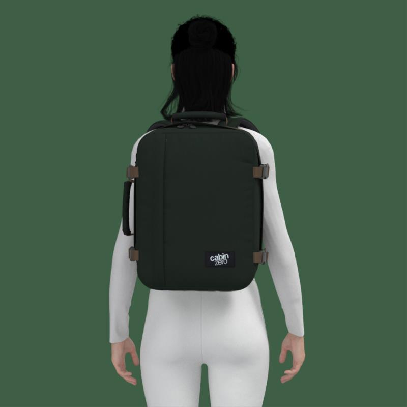 La Mochila CABINZERO Classic está diseñada para convertirse en tu gran compañera en cada viaje. Esta es la mochila de viaje para los amantes de las ZERO molestias. Diseño perfecto y materiales de gran calidad. CAPACIDAD 28 L y una DIMENSIONES de 39 x 29,5 x 20 cm un PESO de 600gr y BOLSO INTERIOR PARA PC de 12" a 15´6" la convierte en la pieza perfecta UNDERSEAT BAG para llevar bajo el asiento del avión. correas de compresión laterales Sistema de flujo de aire con correas para los hombros. Asa superior Asa lateral Deslizadores bloqueables en el compartimento principal Etiqueta de seguimiento Funda para portátil Amplio bolsillo interior con cremallera Amplio bolsillo interior de malla con cremallera Bolsillo con cremallera de acceso rápido en el panel frontal Mochila de carga frontal con abertura tipo almeja para un embalaje eficiente Diseñado para ser independiente para facilitar el acceso, ahorrar espacio y proteger contra la suciedad MATERIALES Clásico CABINZERO Poliéster 600 Denier Recubrimiento resistente al agua Cremalleras YKK®: presenta cremalleras primarias de la más alta calidad.