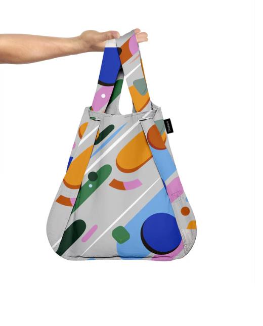 Notabag es la combinación inteligente de un bolso y una mochila. Se transforma con un solo tirón de las correas, para que puedas ponértelo en la espalda y tener las manos libres. En el interior del bolso hay un bolsillo adjunto donde puedes guardar la cartera o las llaves. Cuando no uses el bolso, se pliega en ese bolsillo y se convierte en un bolso del tamaño de una mano. Este elegante bolso ecológico cambia las reglas, adaptándose a la vida cotidiana; práctico y flexible como ningún otro. Al comprar este producto, contribuyes a nuestra donación 1% for the Planet. Especificaciones – Tamaño: 45×65 cm – Tamaño de la bolsa: 13×15,5 cm – Mezcla de algodón y nailon anti desgarro – Reutilizable/ecológico – Resistente al agua – Lavable a máquina
