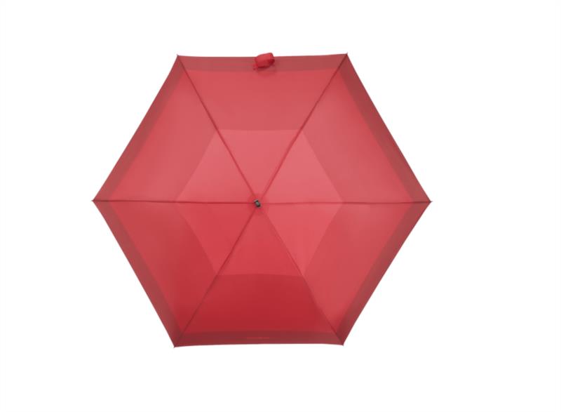 Paraguas ultra plano y ligero. Dimensiones: 22.5cm-88.5 cm. Bastidor Steel. Número de varillas 6 . Apertura Manual. Revestimiento de la tela en Teflón. (Secado ultra rápido) Anti-Viento. Peso: 200gr
