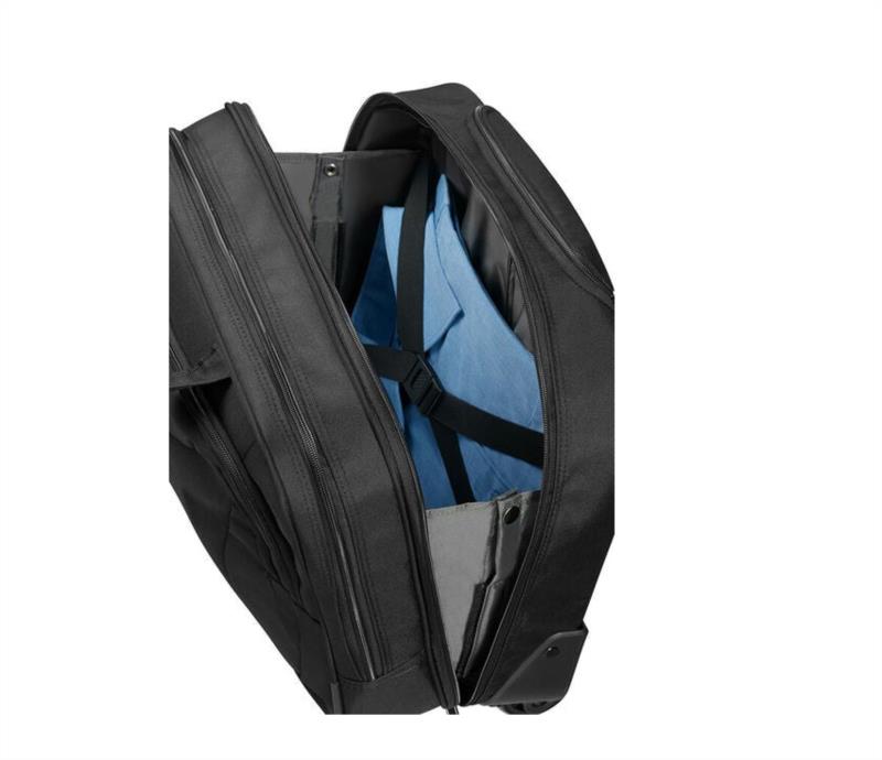 El Maletín con ruedas de AT Work ofrece total versatilidad para trabajo y tiempo libre. Cuenta con un compartimento específico para portátil de 15,6", un compartimento independiente para tableta de 10,1" y un excelente almacenamiento interno para documentos. Además, cuenta con un compartimento con cintas cruzadas para ropa, así que puedes usarlo como equipaje de mano. Si viajas con equipaje más grande, la práctica pieza Smart Sleeve te permite colocarlo sobre el asa de tu otra maleta. También cuenta con unas cómodas asas acolchadas y una resistente placa protectora en la parte baja para mayor protección. Dimensiones 38 x 44 x 23 centímetros